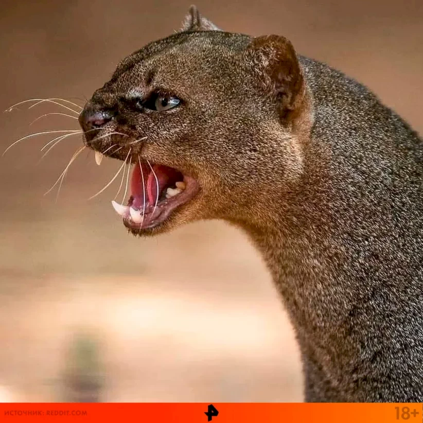 Ягуарунди, семейство кошек, ест фрукты, дружит с обезьянами .