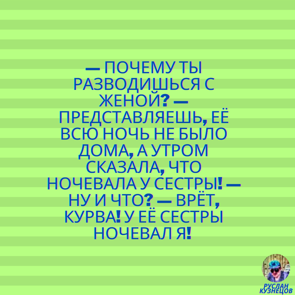 — Петя, тебе уже 35 лет, ты можешь этим бабам из клуба вначале телефоном рожу подсвечивать?!