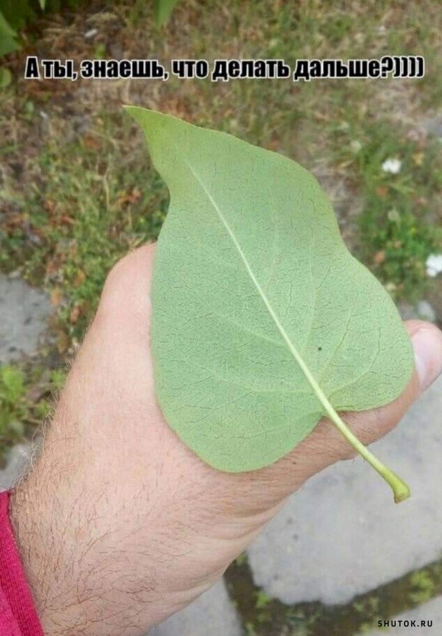 Можно сильно хлопнуть сверху ладошкой, будет дырка в листочке. Можно черенок просунуть в кончик листочка, получится парус к кораблику-щепочке)