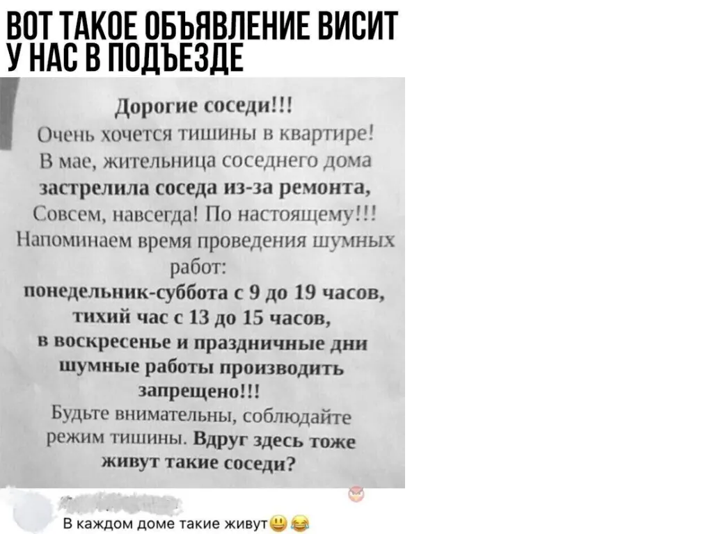 помните, в нашем детстве был мульфильм для взрослых «История одного преступления?» и это было тогда, когда было намного тише. Я работаю в офисе в центре города, у нас идут две центральные улицы мимо офиса. Целый день шум от машин, вибрация от музыки и если кто-то делает ремонт на нижних этажах — звук перфоратора. Еду домой (живу в частном секторе — тишина, птички поют… в ожиданиях, да). Начинаются гонки на машинах, летом ремонты и стройки у соседей, зимой прогрев машин (фуры и спец техника у соседей) и круглогодичная и круглосуточная работа ресторана, что построили напротив нашего дома… сегодня ночью был салют, например… а в прошлый раз стреляли. днем одни шумы, ночью другие, меня расшатывает до невозможности. Тоже вспоминаю про сковородку....