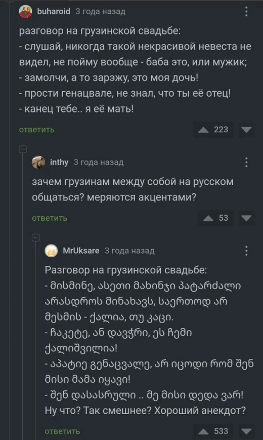 — О, здорово! А скажи что-нибудь по-братски?..