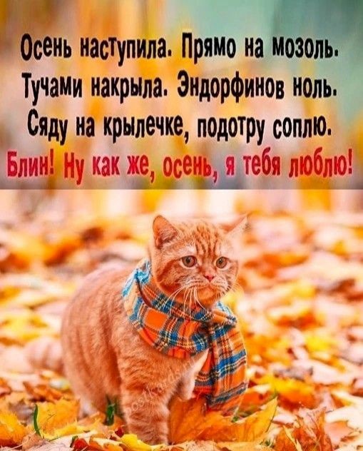 Я люблю осень, но золотую и теплую. А у нас — грязно, холодно и дождь. В такую осень даже песель гулять из будки не имеет желания выходить. Отопление включать рано. Так и ходим с котейкой по дому в поисках оптимального для работы места.
