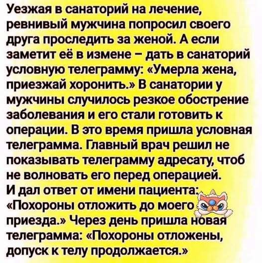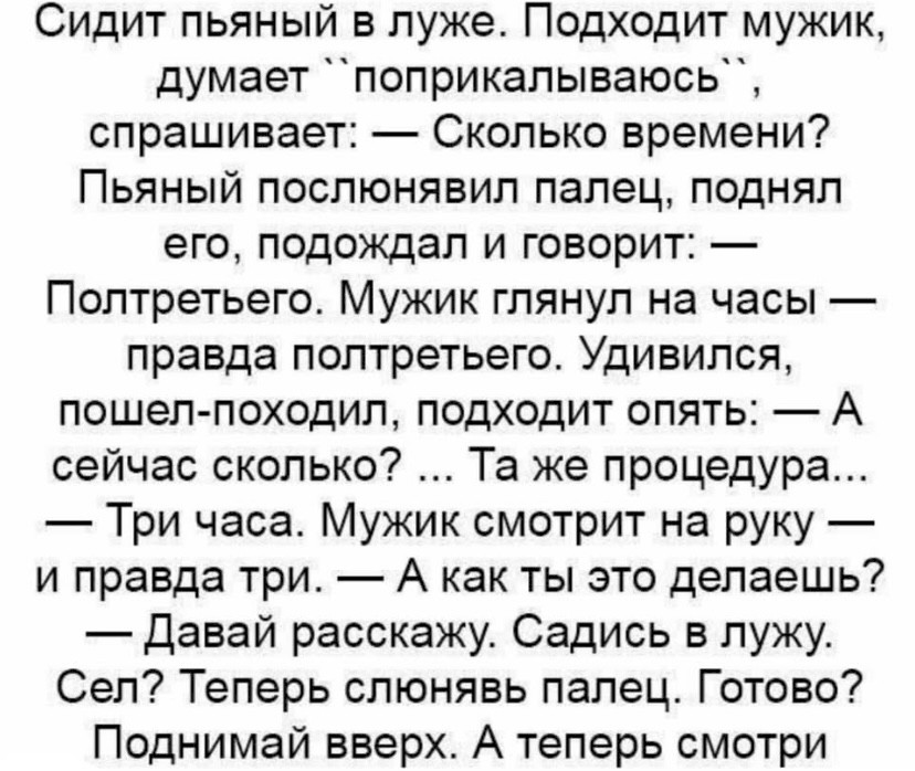 На следующее утро ситуация повторяется. Мужик приходит вечером домой, и рассказывает про всё жене. Та ему говорит: забей, мол, мало ли кругом всяких идиотов. На следующее утро мужик снова стоит на остановке, мимо пробегает тот же спортсмен, щёлкает его по носу и укоризненно говорит: