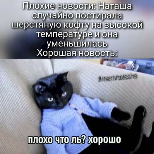 — Неделю назад мой кот пропал, и четыре дня назад я его нашла и принесла в дом. А сегодня вернулся мой кот. Теперь у меня живут два одинаковых кота.