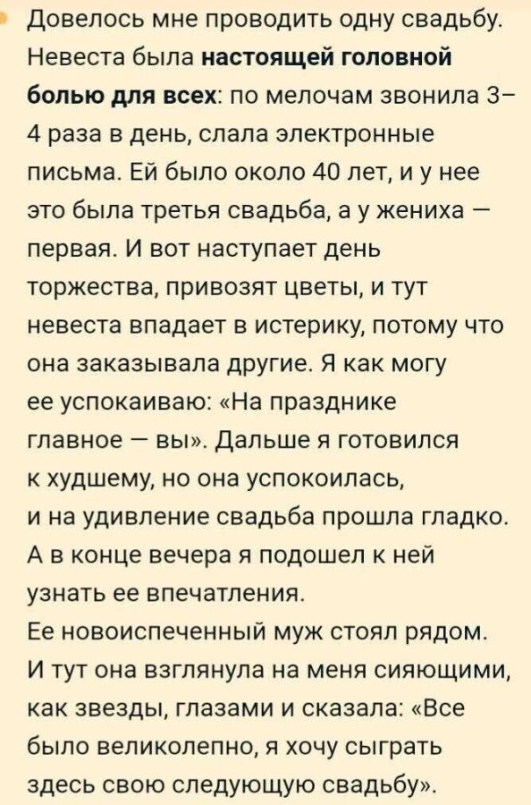 — Да не дай Бог! Когда у неё хорошее настроение, она ещё и поёт!..