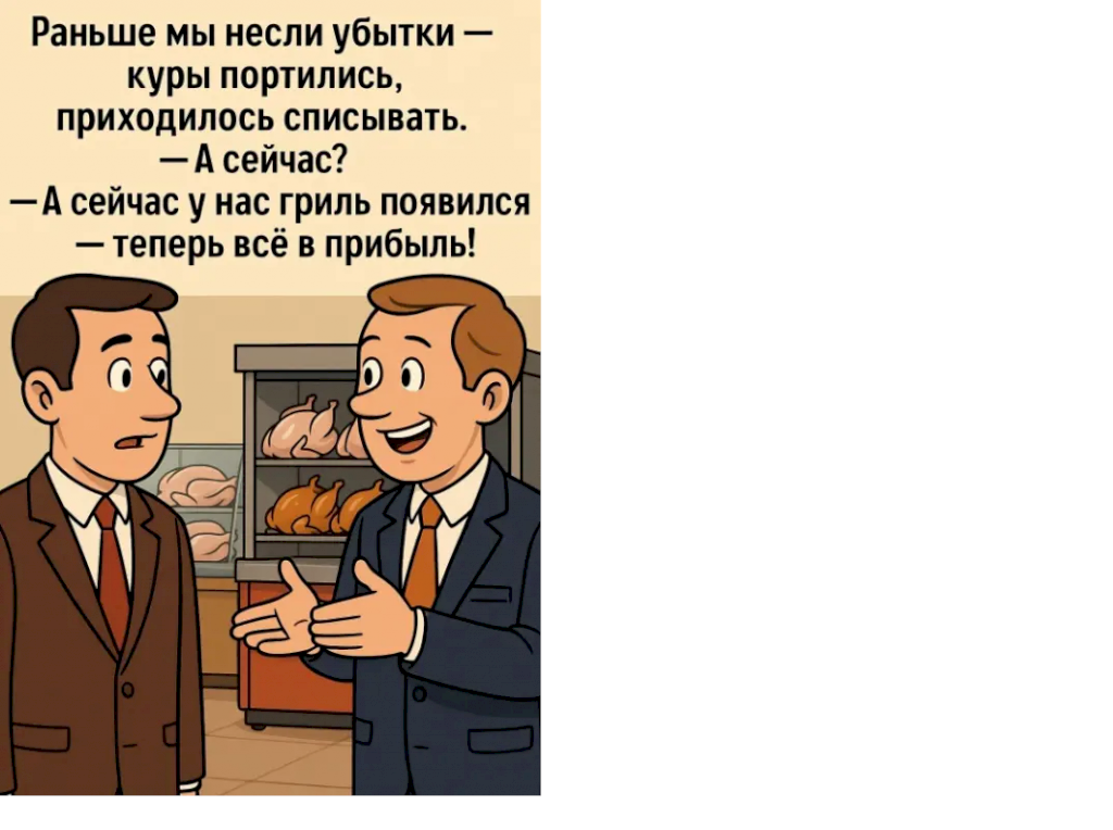 Заходит в магазин, видит, там курица-гриль готовится.