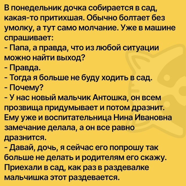 — Хорошо, Люся, мы сейчас решим, кому из нас придётся мыть посуду. Но ты должна запомнить очень сложное правило: орёл — я выиграл, решка — ты проиграла…