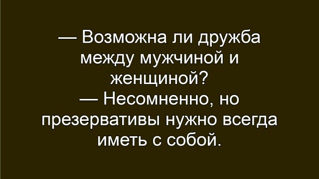 — Мужчина должен женщине приносить радость. А уже присутствием или таки отсутствием, то она сама решает.