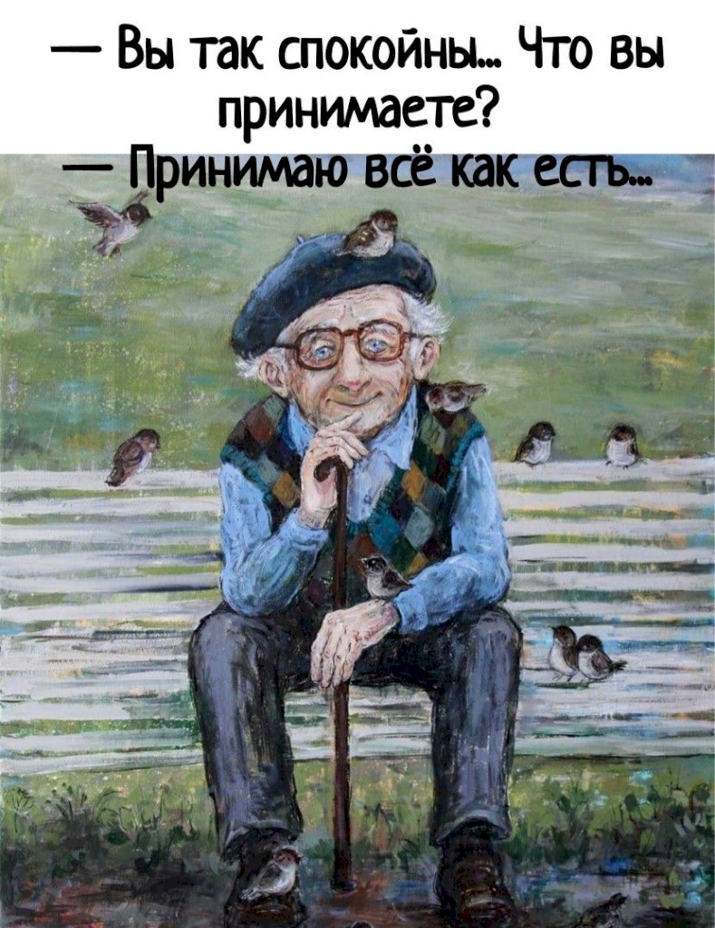 Да ешьте, сколько влезет, всё равно много уже не влезет. В человеке важен не вес, а то, как он его носит! Спите, сколько хотите, у пенсионера — когда встал, тогда и утро. Не ждите, когда кто-то сделает вас счастливым, — налейте себе сами. Если вас незаслуженно обидели — вернитесь и заслужите. Не жалуйтесь на судьбу, ей с вами, может быть, тоже не сильно повезло.Если жизнь после 50-ти вас не устраивает, примите ещё пятьдесят. И не берите от жизни всё — вдруг не донесёте. А идя исповедаться, берите валидол — вдруг батюшку прихватит от вашего рассказа.Относитесь к себе с любовью, а ко всему остальному — с юмором.Александр Ширвиндт