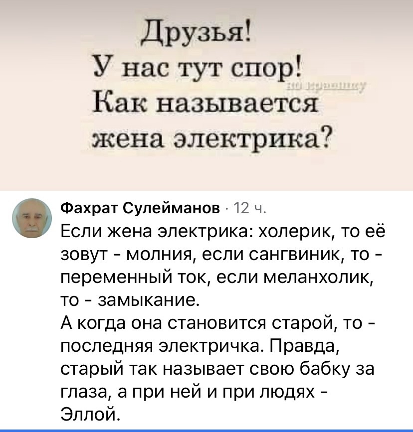 А почему, Танюша, у тебя пупка-то нет? – Да стёрся в общежитии...
