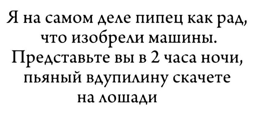 Зато лошади говорить не надо куда ехать — сама найдет.