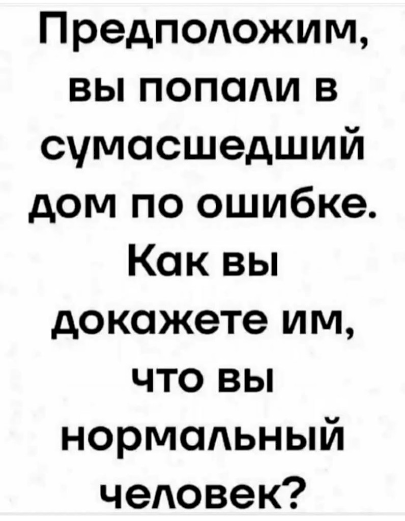 Сотрудникам дурки не докажешь что ты нормальный(-ая), потому что среди них нет нормальных