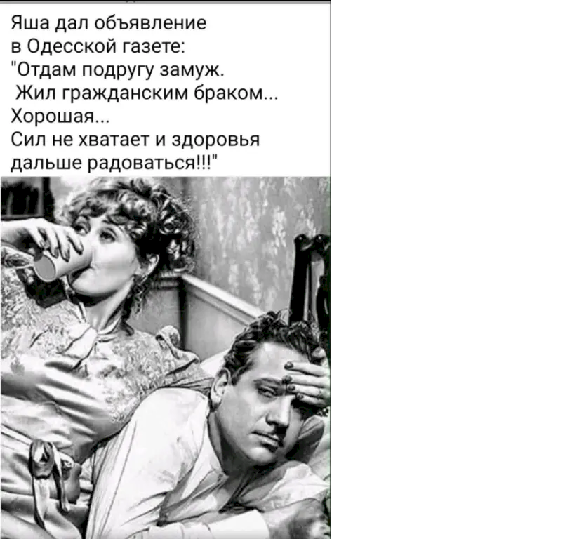 — Пятьдесят лет вы прожили со своей женой. Неужели за это время у вас ни разу не возникало желание развестись с ней?