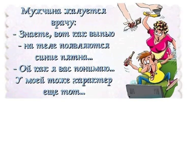 — Макияж вам, милочка, пока наносить нельзя — аллергия. Купите смывку для лица и бутылку водки. Водку отдайте мужу.