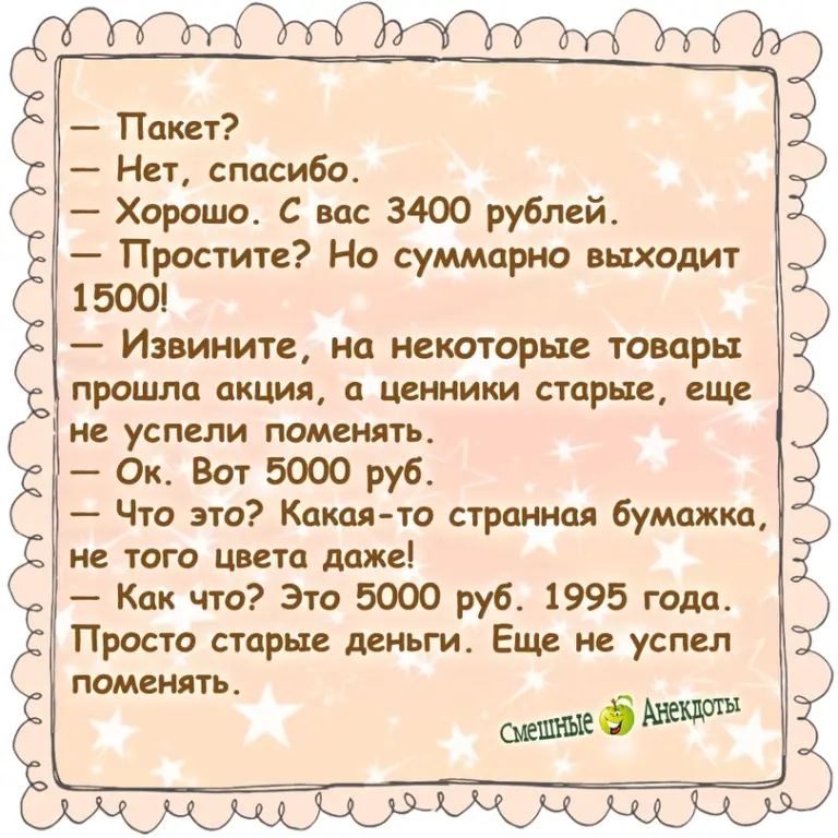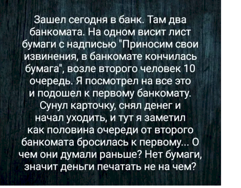 — Ну и что? А сколько у меня было на счету в прошлом месяце?
