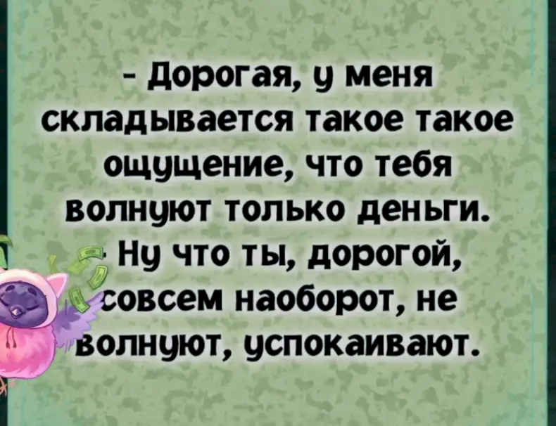 - У меня, Люся, складывается ощущение, что квартира заминирована, а когда и где рванет непонятно...