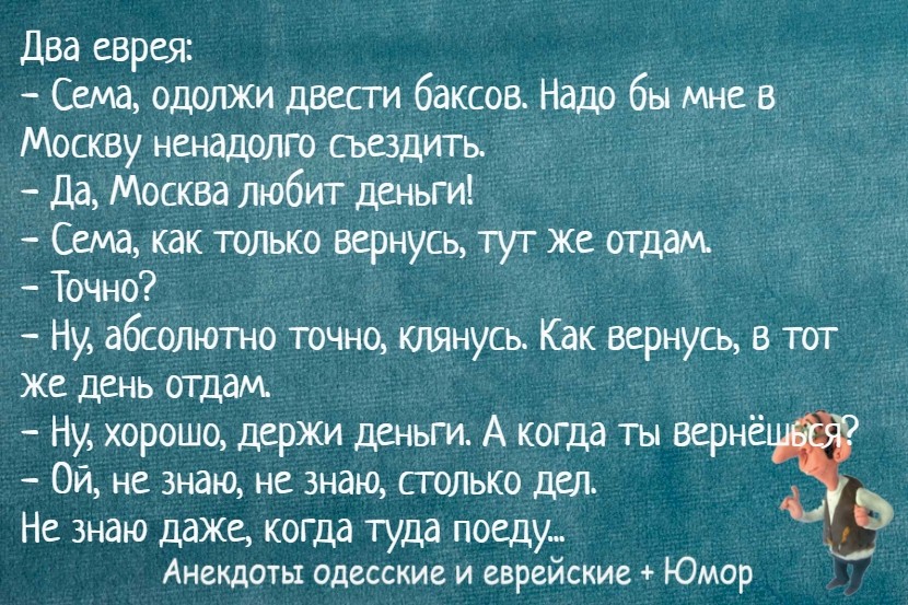 — Тогда пойди и найдите мне в раю Адама и Еву, а то народу там много, а я их найти не могу.
