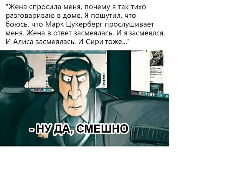 А Марк не засмеялся… Он подумал, что Сири нужно доработать и когда шутят про него, чтобы она не смеялась!