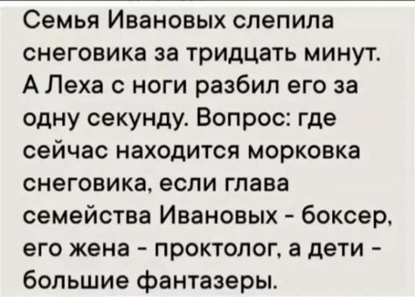 — Не плачь сынок, нормальная у тебя голова, сходи быстренько в магазин, за картошкой.