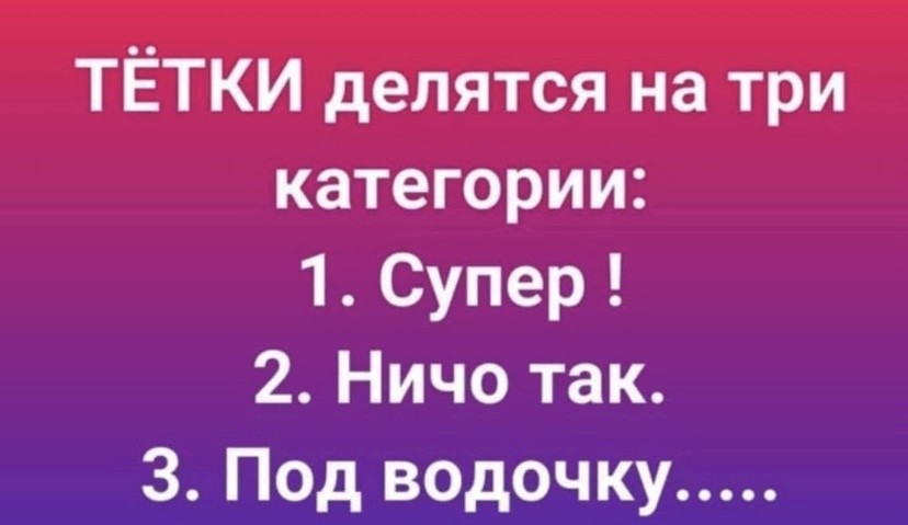 — Он однажды увидел, как она плюет на утюг, и спросил, зачем она это делает. Та ответила: "Чтобы узнать, горячий ли утюг".