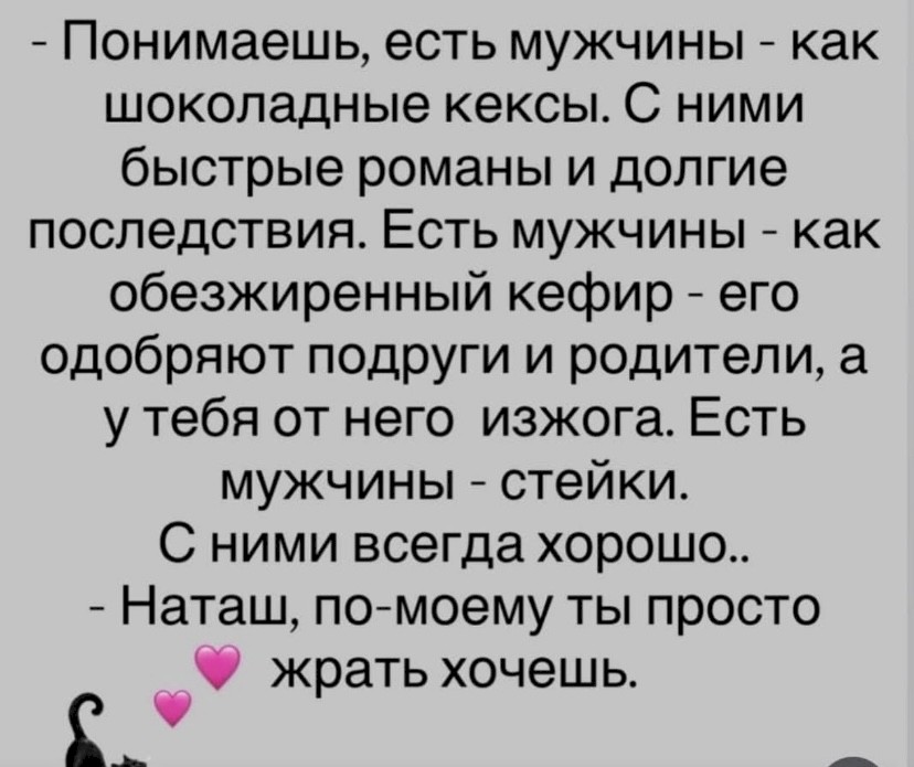 Моя сегодня говорит: — Меня беспокоит, что у тебя высокий показатель холестерина в крови.