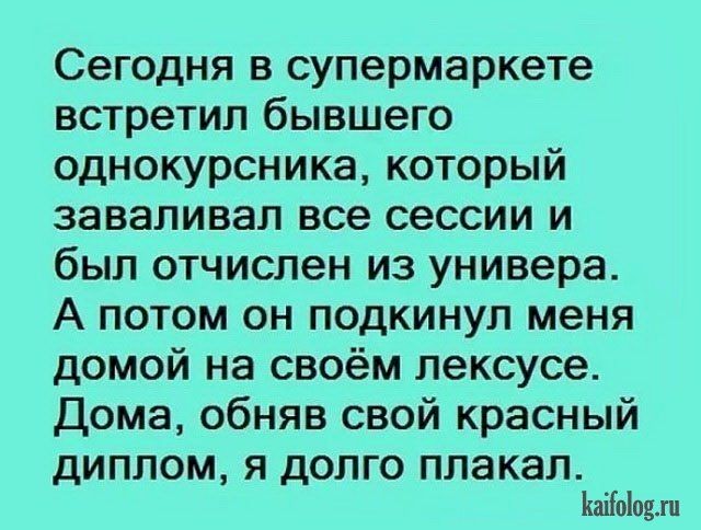 — Ну и класс мне попался тупой! Объясняю теорему, не понимают. Объясняю второй раз. Не понимают! В третий раз объясняю. Сам уже понял. А они не понимают!..