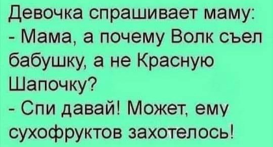 — Пап, а зачем конфеты заворачивают в шелестящие обёртки? — Так чтобы все слышали, как наша мама худеет!