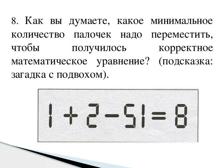 Надо 1, которая стоит после 5, переставить перед 2: 1+12-5=8.