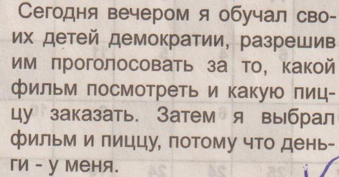Делать нечего — пришлось вести. На следующий день учительница спрашивает у Вовочки: