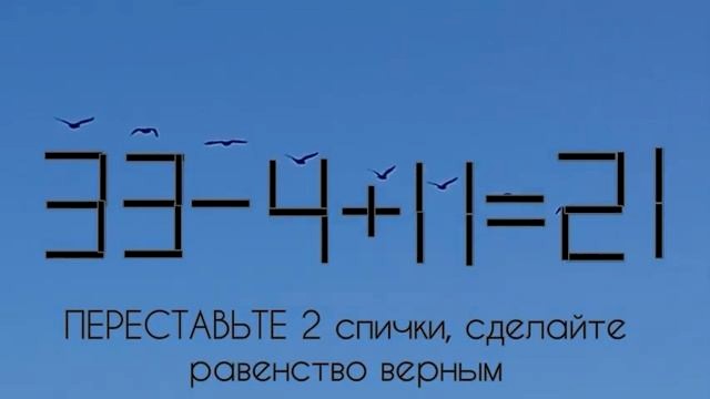 Вторую тройку превратить в 6, передвинув верхнюю вертикальную палочку и забрав вертикальную палочку из плюса. Получится: 36-4-11=21.: