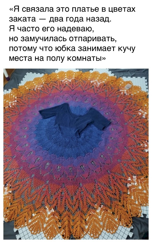 А, когда ей надоест отпаривание — она сделает из него скатерть (или две шали)!!!😁😁😁