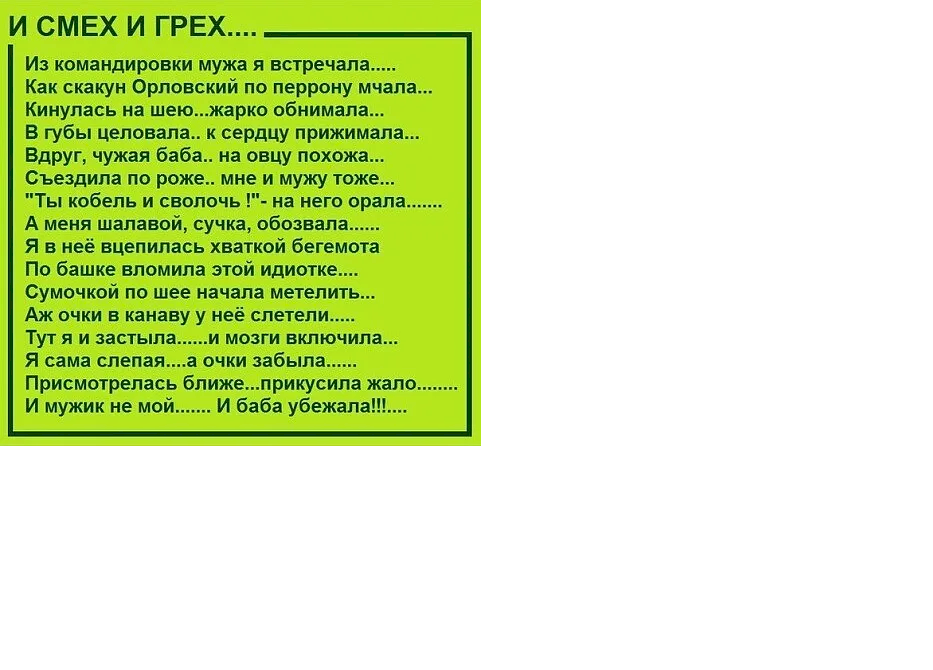 - Нет проблем! Только давайте промотаем ещё дальше: ты мне надоел, забирай вещи и вали!