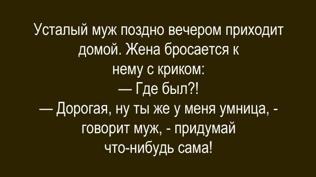 - Инстинкт самосохранения. Представь себе: ты ужрался и приползаешь домой на рогах. И тут тебя встречают десять жен со скалками!